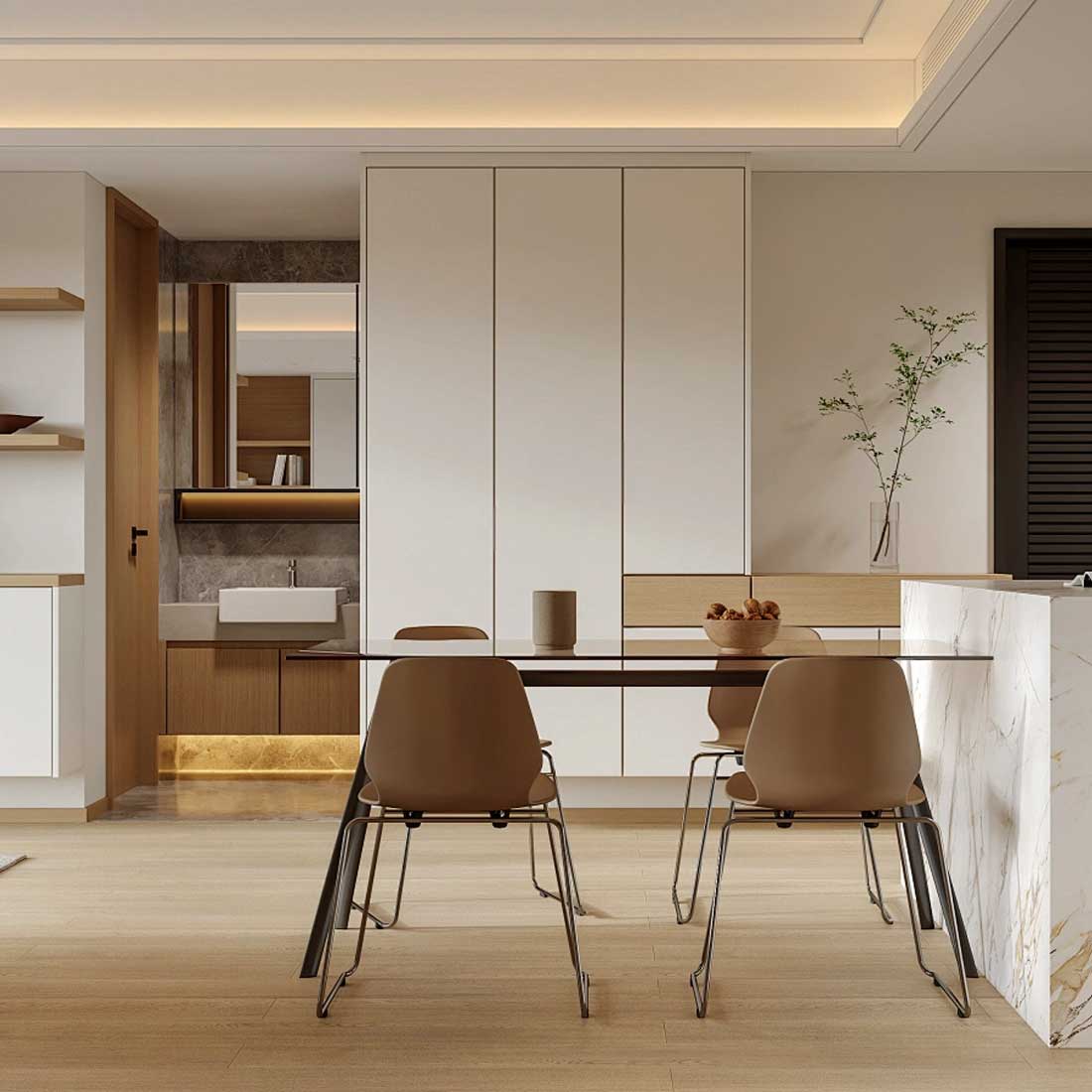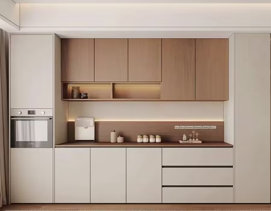 Look for eco-friendly materials with low formaldehyde emissions, such as E0/ENF-grade paint-free boards, multi-layer solid wood, or sintered stone. These materials are durable, safe, and healthier for indoor use.